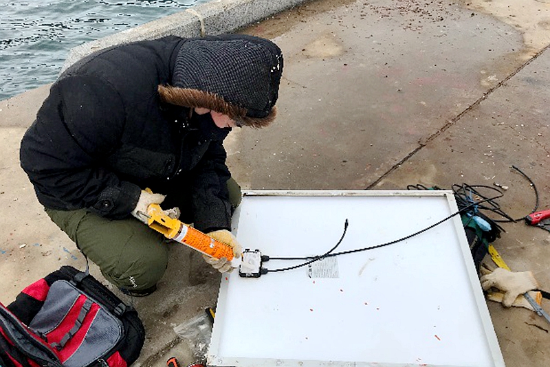 中國(guó)科學(xué)院近海海洋觀測(cè)研究網(wǎng)絡(luò)在北黃海獐子島海域布放的浮標(biāo)系統(tǒng)自2009年投入使用以來(lái),在位運(yùn)行時(shí)長(zhǎng)已將近九年,系統(tǒng)整體老化嚴(yán)重,加上今冬多次寒潮的影響,共有三套浮標(biāo)系統(tǒng)出現(xiàn)了系統(tǒng)工作不穩(wěn)定、數(shù)據(jù)中斷以及水下觀測(cè)數(shù)據(jù)異常等故障。針對(duì)故障情況,公共技術(shù)中心經(jīng)過仔細(xì)討論,提前制定詳細(xì)的維護(hù)方案,并作好充分準(zhǔn)備,在海況允許情況下現(xiàn)場(chǎng)對(duì)三套浮標(biāo)進(jìn)行了全面的檢修維護(hù)。此次維護(hù)工作主要包括浮標(biāo)系統(tǒng)的故障排除、附著海生物清理、接插件重新水密處理、安全隱患消除等內(nèi)容,其中05號(hào)浮標(biāo)系統(tǒng)完成了數(shù)據(jù)采集控制系統(tǒng)、供電系統(tǒng)以及傳輸線纜的徹底更換,并由原來(lái)的單一通信方式增加為CDMA+GPRS雙通信方式,提高了數(shù)據(jù)傳輸?shù)某晒β?,同時(shí)還安裝了獨(dú)立北斗定位系統(tǒng),以增強(qiáng)浮標(biāo)的安全性;04號(hào)浮標(biāo)系統(tǒng)完成了太陽(yáng)能板的維修以及太陽(yáng)能控制器的更換,并改進(jìn)太陽(yáng)能充電線路的密封方式,以降低供電系統(tǒng)因進(jìn)水導(dǎo)致短路的風(fēng)險(xiǎn),同時(shí)安裝銥星信標(biāo)進(jìn)行系統(tǒng)的獨(dú)立定位;02號(hào)浮標(biāo)系統(tǒng)完成了溫鹽傳感器的更換以及銥星信標(biāo)電池的更換。