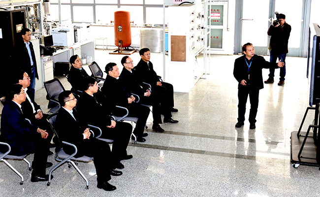 唐一軍首先聽取了劉中民對大連化物所基本情況的介紹,隨后依次到低碳催化與工程研究部、燃料電池研究部、儲能技術(shù)研究部進(jìn)行參觀,聽取了研究室(部)相關(guān)人員的科技工作匯報,并就科技創(chuàng)新、成果轉(zhuǎn)化等方面的問題與科研人員進(jìn)行了深入的交流探討。