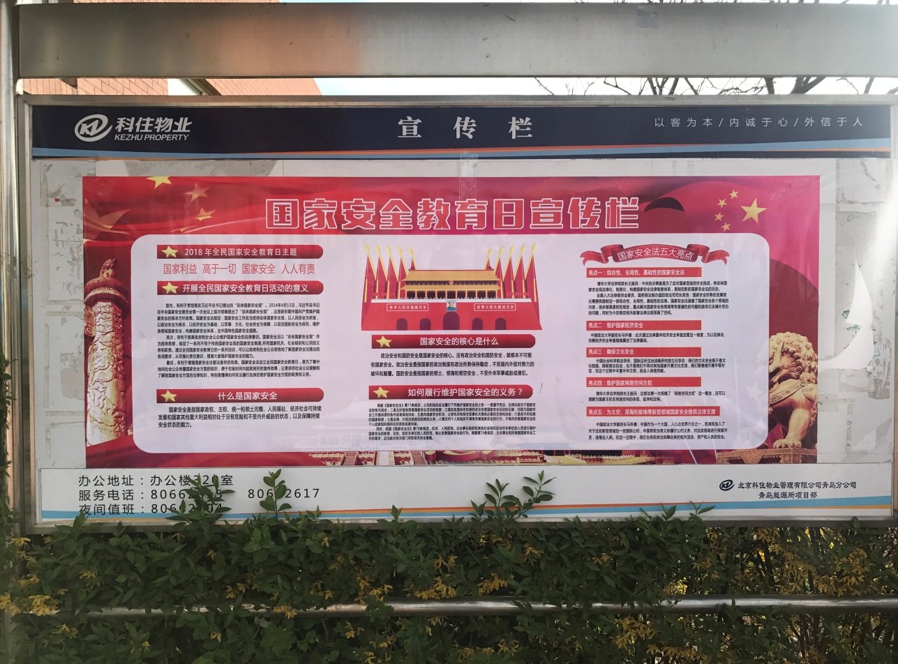 全民國家安全教育日旨在通過多種形式開展國家安全宣傳教育活動,將國家安全教育納入國民教育體系和公務員教育培訓體系,增強全民國家安全意識。今年我所通過在研究所主頁增設宣傳浮動窗口、組織人員在線學習、張貼宣傳材料等途徑開展宣傳活動,解讀《國家安全法》,宣傳國家安全形勢,提高職工、學生維護國家安全的意識和能力。