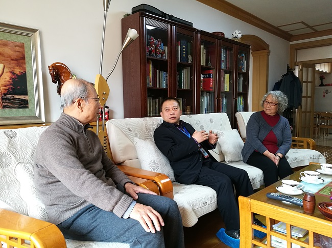 在走訪王秀巖、邱晶明夫婦時,所長劉中民親切詢問了他們的日常生活、身體健康情況等。當?shù)弥麄儎倓偮糜位貋頃r,劉中民表示十分贊同,鼓勵他們多出去走走,切身感受近年來國家發(fā)展帶來的巨大變化。交流中,劉中民還介紹了大連化物所近期主要工作,與前輩分享工作中的苦與樂,對老同志為科研事業(yè)做出的貢獻表示敬意。