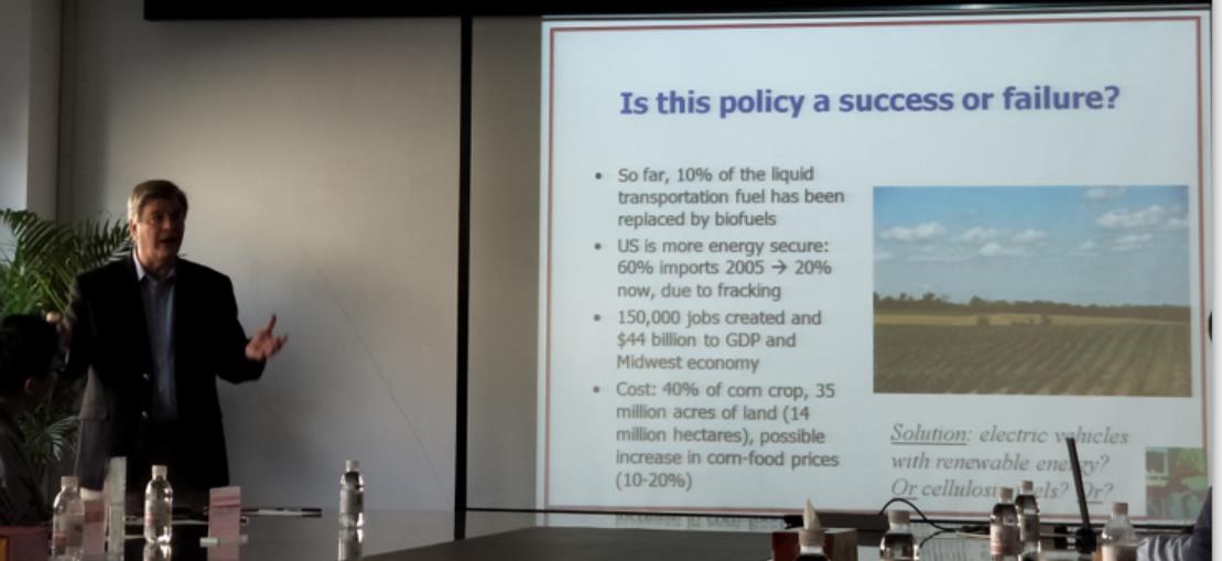 5月10日,美國工程院院士Jerald L. Schnoor教授出席青島能源所“國際專家高層論壇”。Schnoor教授是美國愛荷華大學(xué)土木與環(huán)境工程學(xué)系、職業(yè)與環(huán)境健康學(xué)系教授,Allen S. Henry講座教授,中國科學(xué)院愛因斯坦講座席教授,美國國家基金會21世紀(jì)環(huán)境保護(hù)科學(xué)委員會主席,全球與地區(qū)環(huán)境研究中心主任。本次論壇由研究所科技處處長梁向峰主持,并為Schnoor教授頒發(fā)了“國際專家高層論壇”榮譽獎牌。 Schnoor教授帶來了題為“Biofuel and Cellulosic Biofuel in Iowa and the U.S.”的學(xué)術(shù)報告。他指出了生物燃料和EPA可持續(xù)發(fā)展燃料標(biāo)準(zhǔn)(RFS2)發(fā)展現(xiàn)狀及面臨的挑戰(zhàn),認(rèn)為原油市場競爭力加劇、生物燃料生產(chǎn)技術(shù)仍存在難點等因素是導(dǎo)致纖維素生物燃料商業(yè)化推廣緩慢的原因。通過舉例詳細(xì)介紹了玉米原料生產(chǎn)和乙醇燃料生產(chǎn)面臨的主要問題是增加當(dāng)?shù)厮Y源使用量,并產(chǎn)生水資源及大氣污染。他認(rèn)為,纖維素生物燃料由于低環(huán)境污染等優(yōu)勢,在“應(yīng)用糧食作物生產(chǎn)乙醇燃料”的領(lǐng)域會有更加廣闊的前景。報告結(jié)束后,參會人員就相關(guān)學(xué)術(shù)問題與Schnoor教授進(jìn)行了探討和交流。
