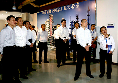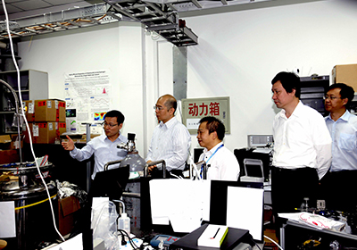 譚作鈞一行首先參觀了燃料電池研究部、儲能技術研究部、低碳催化與工程研究部、分子反應動力學國家重點實驗室等研究單元,并與科研人員進行了交談。