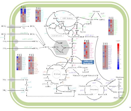 圖1. 不同脅迫對(duì)聚球藻UTEX2973中心代謝的影響