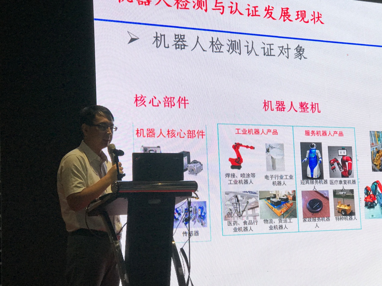 沈陽自動化所檢驗檢測認證中心技術(shù)總監(jiān)李志海做了《機器人產(chǎn)品檢測認證及檢測方法研究與實踐》主題報告