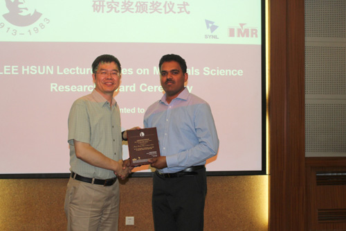 來(lái)訪期間,Rahul R. Nair教授為金屬所科研人員和研究生作了題目為“Tunable graphene-based membranes”的報(bào)告。報(bào)告前,成會(huì)明院士為Rahul R. Nair教授頒發(fā)了李薰研究獎(jiǎng)獎(jiǎng)牌,任文才研究員主持了報(bào)告會(huì)。