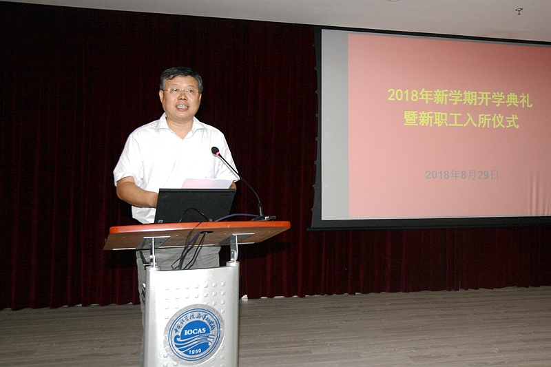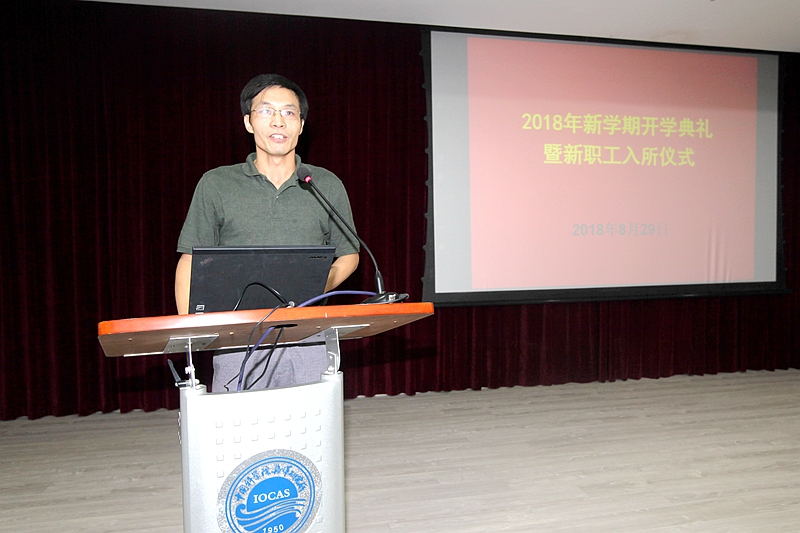 8月29日,海洋研究所舉行“2018年研究生開學(xué)典禮暨新職工入所儀式”。所長(zhǎng)王凡、黨委書記王輝、常務(wù)副所長(zhǎng)楊紅生、研究生導(dǎo)師代表、優(yōu)秀校友代表以及近二百名新入所職工和研究生參加儀式。王輝書記主持儀式。