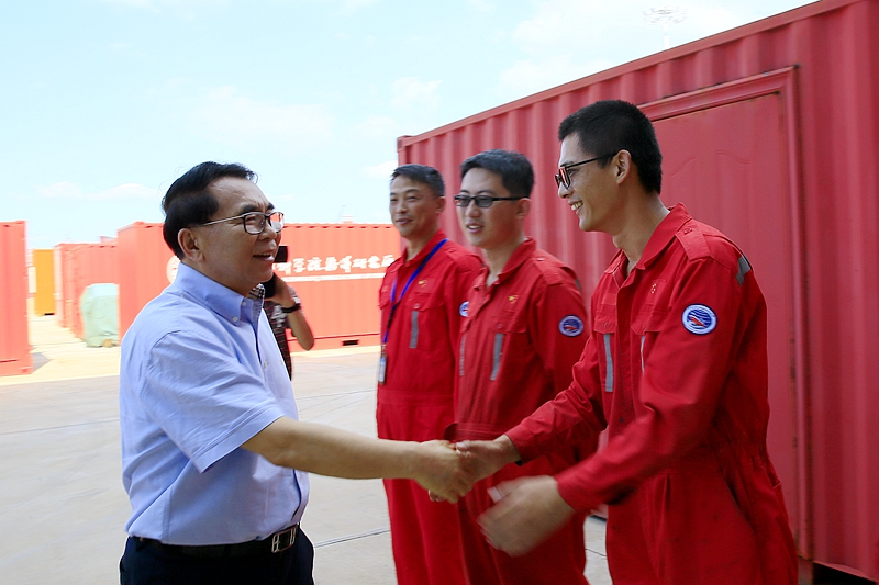 在海洋研究所西海岸新區(qū)園區(qū),白春禮院長慰問了海洋科考隊員,詳細了解了中科院科考船隊工作進展、科學(xué)考察船專用碼頭及配套測試樓運行情況,對海洋所短時間內(nèi)形成完整的深海極端環(huán)境探測及取樣能力表示肯定,并具體指出要在此基礎(chǔ)上抓緊研究分析,在生物多樣性及深海極端生態(tài)環(huán)境的生命過程及相應(yīng)機制等方面,早出多出研究成果。
