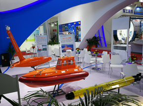 沈陽(yáng)自動(dòng)化所海洋信息技術(shù)裝備中心的“先驅(qū)號(hào)”無(wú)人水面艇、“BQ-01”半潛式無(wú)人艇及“遠(yuǎn)征二號(hào)”自主水下機(jī)器人三個(gè)產(chǎn)品模型在合作單位中航能科能源科技有限公司展臺(tái)展出,展示了以無(wú)人艇為平臺(tái)的海上風(fēng)電巡檢和監(jiān)測(cè)解決方案。無(wú)人艇等產(chǎn)品模型是整個(gè)展會(huì)獨(dú)家展示的無(wú)人海洋系統(tǒng)展品,宣傳了沈陽(yáng)自動(dòng)化所的相關(guān)技術(shù)和產(chǎn)品。