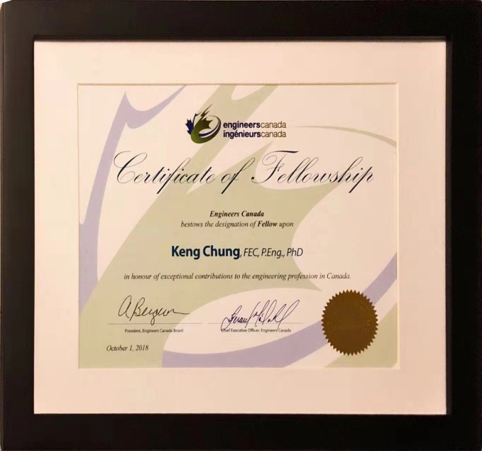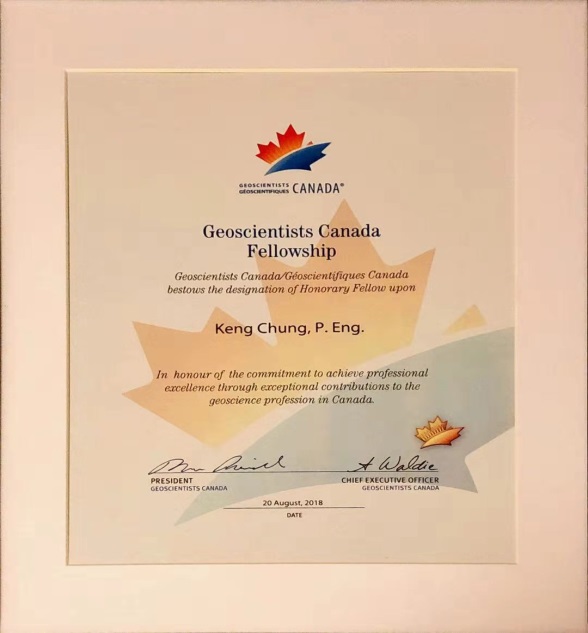 11月22日,在加拿大埃德蒙頓舉行的加拿大工程師協(xié)會年會上,青島能源所研究員莊慶發(fā)榮獲2018年度加拿大工程師協(xié)會(Engineers Canada, 鏈接: https://engineerscanada.ca/)工程協(xié)會會士(FEC)和地質(zhì)科學(xué)協(xié)會榮譽(yù)會士(FGC-Hon.)稱號(Fellow of Engineers Canada and Honorary Fellow of Geoscientists Canada)。