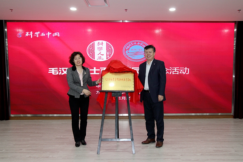 會上還觀看了毛漢禮院士生平事跡視頻片。九三學(xué)社青島市委駐會副主委于鵬、中科院海洋所黨委書記王輝共同為“九三學(xué)社青島市委傳統(tǒng)愛國主義教育基地”揭牌。