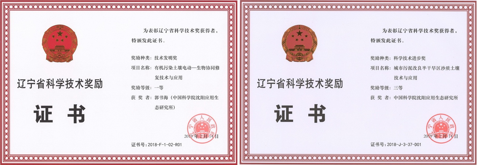 2月26日,遼寧省科學(xué)技術(shù)獎(jiǎng)勵(lì)大會在沈陽召開,頒發(fā)了2018年度遼寧省科學(xué)技術(shù)獎(jiǎng)。中國科學(xué)院沈陽應(yīng)用生態(tài)研究所主持研究的2項(xiàng)成果獲獎(jiǎng)。“有機(jī)污染土壤電動-生物協(xié)同修復(fù)技術(shù)與應(yīng)用”(完成人:郭書海等)獲遼寧省技術(shù)發(fā)明獎(jiǎng)一等獎(jiǎng),“城市污泥改良半干旱區(qū)沙質(zhì)土壤技術(shù)與應(yīng)用”(完成人:胡亞林等)獲遼寧省科技進(jìn)步三等獎(jiǎng)。繼2016年獲遼寧省自然科學(xué)一等獎(jiǎng),2017年獲遼寧省科技進(jìn)步一等獎(jiǎng),今年又獲遼寧省技術(shù)發(fā)明一等獎(jiǎng),這是沈陽生態(tài)所連續(xù)三年獲得遼寧省科學(xué)技術(shù)一等獎(jiǎng),彰顯研究所在助力地方經(jīng)濟(jì)社會發(fā)展的重要支撐和引領(lǐng)作用。