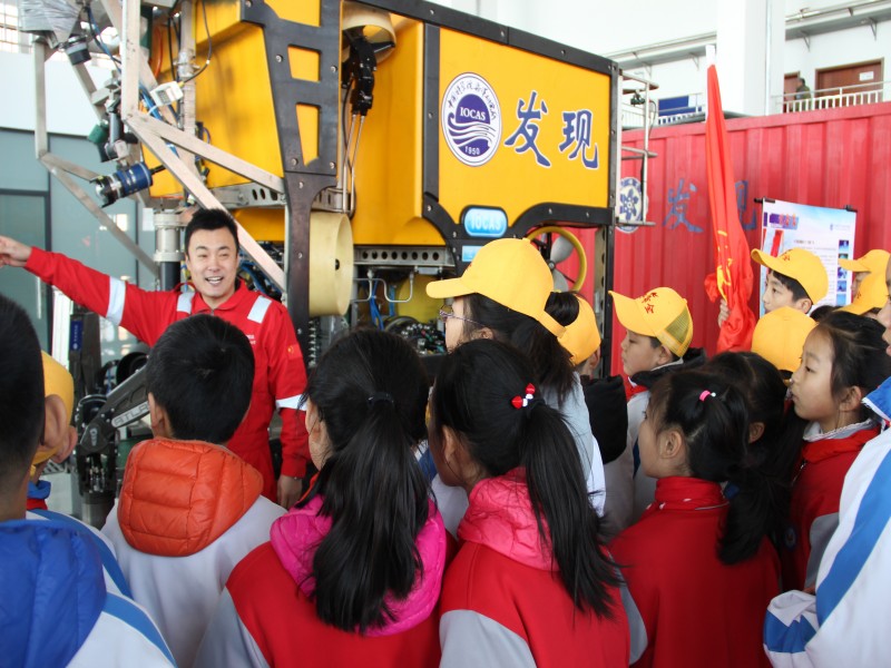 工作人員向同學(xué)們講解“發(fā)現(xiàn)”號(hào)ROV