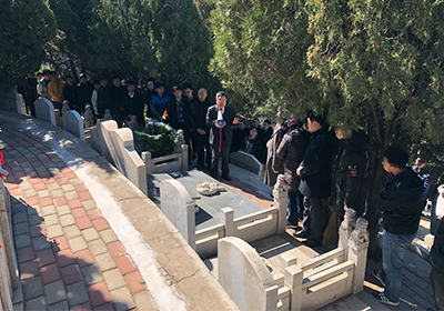在先生們的墓碑前,在肅穆的氣氛中,李燦帶領(lǐng)大家祭掃陵墓,敬獻(xiàn)花籃,向先生們鞠躬、默哀,表達(dá)了對(duì)先生們的崇高敬意和無(wú)限追思。