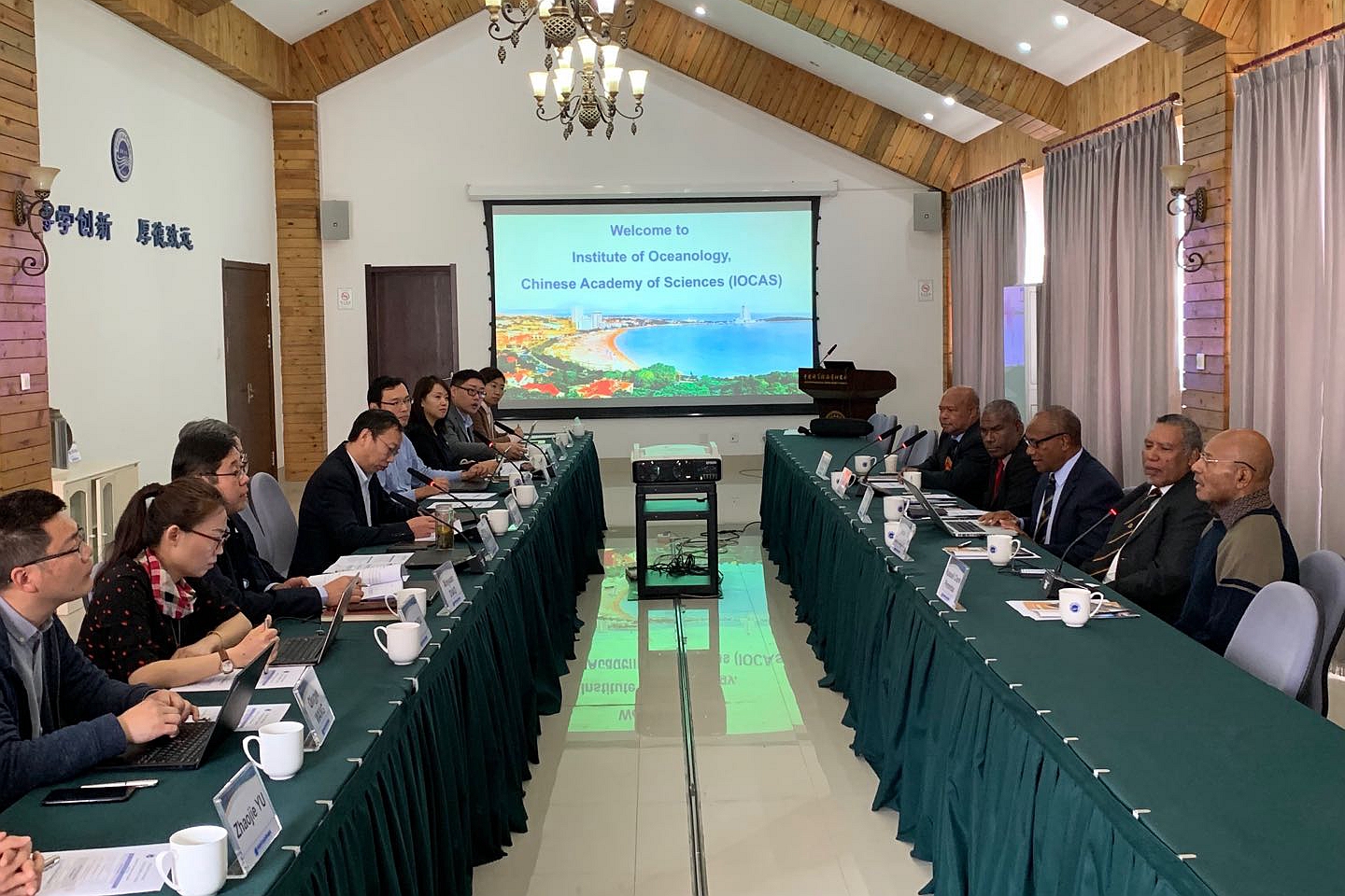 4月26日,巴布亞新幾內(nèi)亞大學(xué)管理中心教務(wù)處長Peter Petsul、自然與物理學(xué)院院長Chalapan Kaluwin等一行五人訪問海洋所。所長王凡、NPOCE科學(xué)指導(dǎo)委員會主席胡敦欣院士、副所長李超倫、所長助理刁新源,相關(guān)領(lǐng)域?qū)W科專家及國際合作辦公室、NPOCE計(jì)劃辦公室等參加座談會。