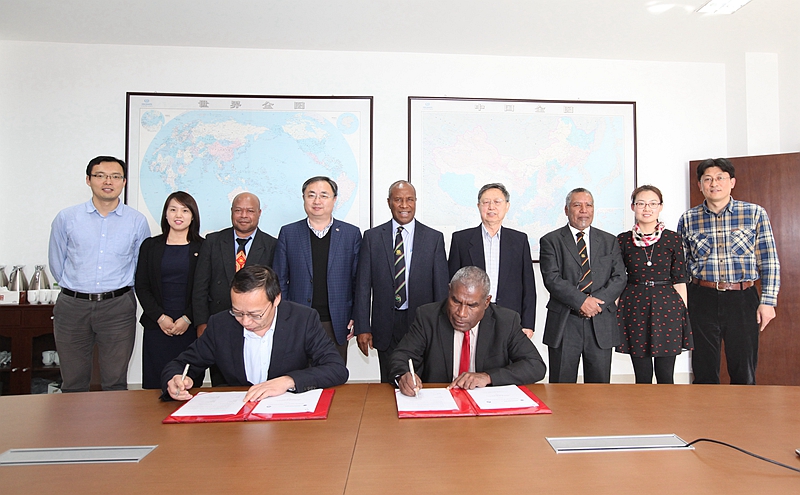 座談會結(jié)束之后,在所長王凡及巴新大學(xué)校長代表Peter Petsul的見證下,副所長李超倫與巴新大學(xué)自然與物理學(xué)院院長Chalapan Kaluwin簽訂合作備忘錄,擬在海洋多學(xué)科領(lǐng)域開展合作,就聯(lián)合開展合作研究、科學(xué)家及研究生互訪交流、探索中巴新合作項(xiàng)目等方面達(dá)成共識。