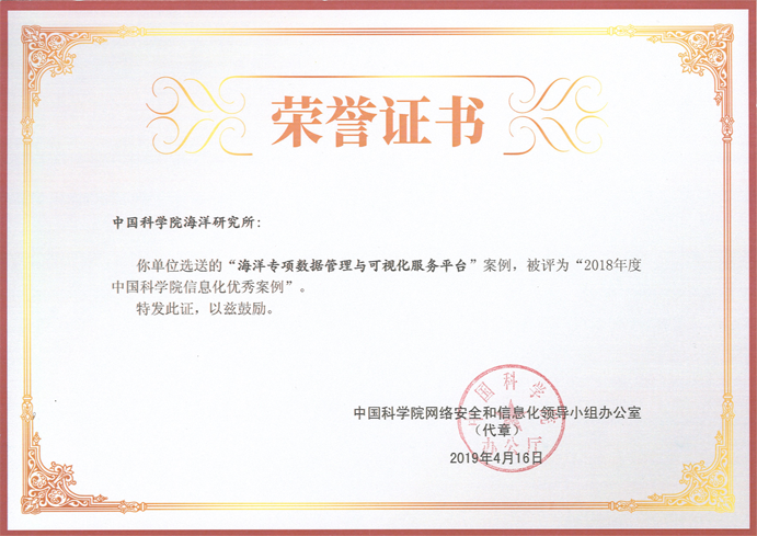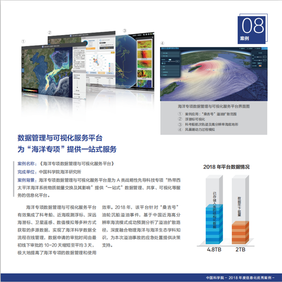 近日,中國科學(xué)院在全院范圍內(nèi)開展科研信息化優(yōu)秀應(yīng)用案例評選工作,中科院海洋所海洋大數(shù)據(jù)中心設(shè)計研發(fā)的“海洋先導(dǎo)專項數(shù)據(jù)管理與可視化平臺”被評為2018年度中國科學(xué)院科研信息化優(yōu)秀案例,并入選《中國科學(xué)院信息化年度報告(2018)》 。