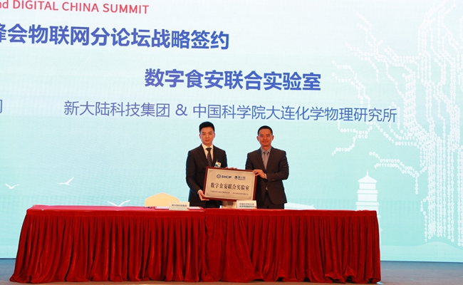 5月7日,中國(guó)科學(xué)院大連化學(xué)物理研究所受邀參加第二屆數(shù)字中國(guó)建設(shè)峰會(huì),大連化物所副所長(zhǎng)蔡睿在物聯(lián)網(wǎng)分論壇上代表大連化物所與新大陸科技集團(tuán)簽訂共建“數(shù)字食安聯(lián)合實(shí)驗(yàn)室”戰(zhàn)略合作協(xié)議。