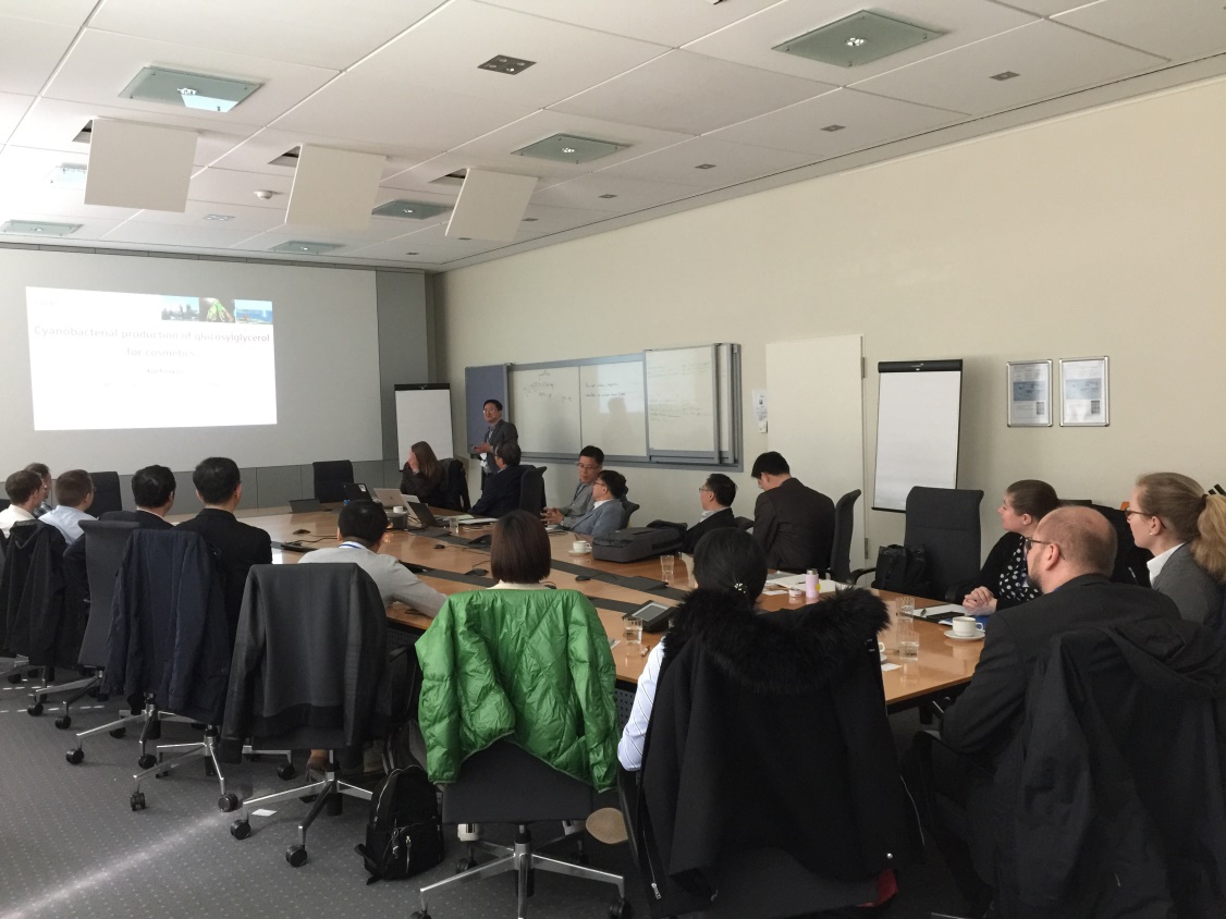 本次研討會分為技術(shù)報告和機(jī)構(gòu)訪問兩部分內(nèi)容。9位中方代表先后介紹了各自在工業(yè)生物技術(shù)領(lǐng)域的特色工作,與參會的德方代表就感興趣的領(lǐng)域進(jìn)行了交流和探討。會議期間,中方代表與于利希研究中心生物與地理科學(xué)研究所、亞琛工業(yè)大學(xué)生物技術(shù)系、世界領(lǐng)先的高科技聚合物材料供應(yīng)商科思創(chuàng)、全球領(lǐng)先的特種化工企業(yè)之一贏創(chuàng)的技術(shù)與創(chuàng)新部門Creavis開展訪問交流。科思創(chuàng)研發(fā)負(fù)責(zé)人Verena Goldbach博士表示,此行代表團(tuán)的訪問使科思創(chuàng)公司了解到中國在生物基材料領(lǐng)域的研發(fā)力量,也從中找到非常感興趣的合作方向。