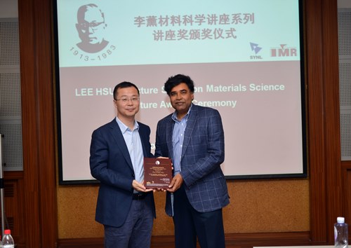 劉崗副所長為Sudipta Seal教授頒發(fā)李薰講座獎(jiǎng)獎(jiǎng)牌