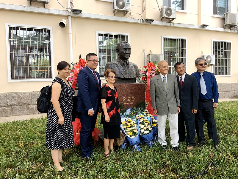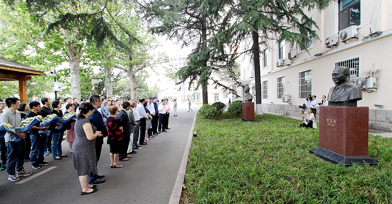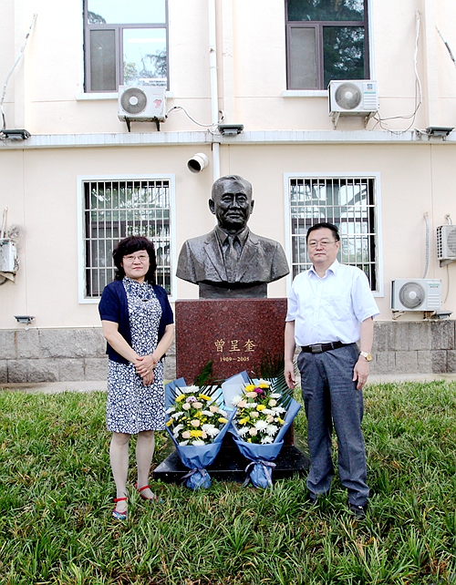 向曾呈奎院士雕像獻(xiàn)花