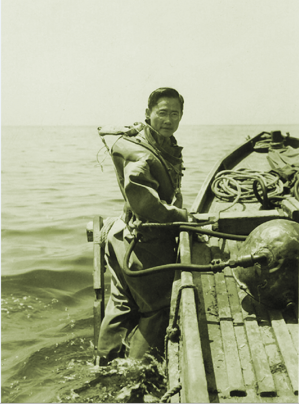 1944年曾呈奎在美國加利福尼亞近海潛水海底做石花菜生長實驗