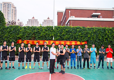 在激烈而又歡樂的籃球賽結(jié)束后,大家在籃球場舉行了簡短的閉幕頒獎儀式,兩隊隊員互相握手言歡,并合影留念。