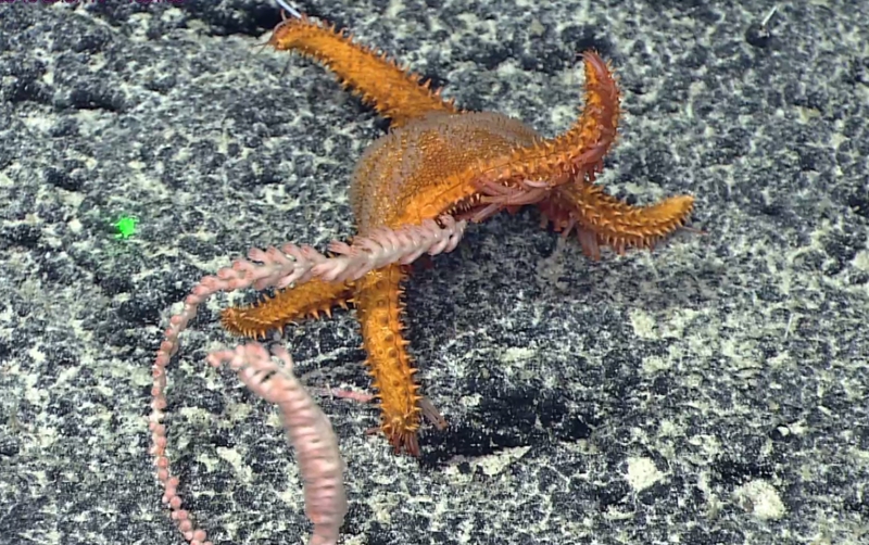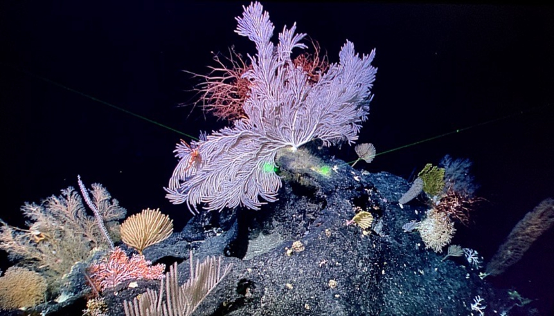 航次中發(fā)現(xiàn)了稀有的海蛞蝓,未知的珊瑚、馬蹄螺、深海扇貝、多毛類、海鞘等罕見深海生物,在寡營養(yǎng)海域的海山發(fā)現(xiàn)多片五彩斑斕的珊瑚林,看到了多種深海生物的共存共生現(xiàn)象,并觀察到了深海蝦孵卵及海星攝食柳珊瑚的現(xiàn)象。