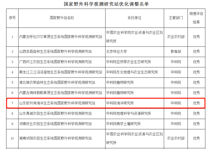 日前,在科技部組織的國家野外站梳理評估工作中,以中科院海洋所為依托單位的“山東膠州灣海洋生態(tài)系統(tǒng)國家野外科學(xué)觀測研究站”獲評優(yōu)秀。