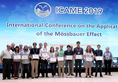國(guó)際穆斯堡爾效應(yīng)應(yīng)用委員會(huì)(International Board on the Applications of the Moessbauer Effect, IBAME)每?jī)赡觐C發(fā)一次青年科學(xué)家獎(jiǎng)和科學(xué)獎(jiǎng)。2019年IBAME青年科學(xué)家獎(jiǎng)由我所畢業(yè)生、現(xiàn)新加坡南洋理工大學(xué)李旭寧博士和日本京都大學(xué)Makina Saito博士獲得,科學(xué)獎(jiǎng)由美國(guó)阿貢國(guó)家實(shí)驗(yàn)室Ercan Alp博士和以色列希伯來(lái)大學(xué)Israel Nowik教授獲得。為鼓勵(lì)更多的青年學(xué)者積極參與穆斯堡爾效應(yīng)應(yīng)用研究,會(huì)議還設(shè)立了ICAME墻報(bào)獎(jiǎng),由30多個(gè)國(guó)家的IBAME委員無(wú)記名投票評(píng)選出了10個(gè)最佳墻報(bào),來(lái)自法國(guó)、德國(guó)、日本等國(guó)的10名青年科學(xué)家獲得該獎(jiǎng)項(xiàng)。