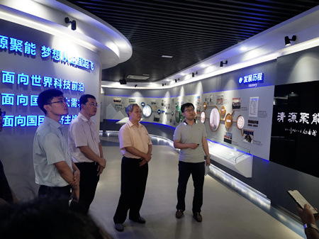 研究所科技處處長(zhǎng)梁向峰帶領(lǐng)孫永田一行參觀了研究所展廳,介紹了研究所的發(fā)展歷程和山東省能源研究院籌建工作進(jìn)展。此外,電化學(xué)過程研究組負(fù)責(zé)人李曉錦研究員、能源材料與納米催化研究組負(fù)責(zé)人梁漢璞研究員分別介紹了研究所在氫燃料電池領(lǐng)域取得的重要科研進(jìn)展。
