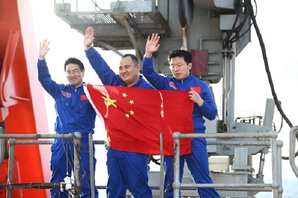 “蛟龍”號首次突破7000米深度的人員出艙(劉開周、葉聰、楊波)