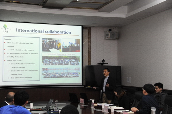 劉麗首先致歡迎辭,歡迎京都大學(xué)生態(tài)學(xué)研究中心2位專家來訪,并介紹了合作備忘錄的內(nèi)容。隨后Shinichi Nakano主任介紹了京都大學(xué)生態(tài)學(xué)研究中心(CER, Kyoto University)概況,包括研究方向,野外臺(tái)站,實(shí)驗(yàn)設(shè)備、人員組成等。方運(yùn)霆從建所歷史,發(fā)展歷程,一三五規(guī)劃實(shí)施等方面向京都大學(xué)專家介紹了沈陽(yáng)生態(tài)所情況。隨后朱教君與Shinichi Nakano分別代表研究所和京都大學(xué)生態(tài)學(xué)研究中心簽署了合作備忘錄,為雙方在科學(xué)研究、學(xué)生培養(yǎng)等方面的深入合作奠定了基礎(chǔ)。