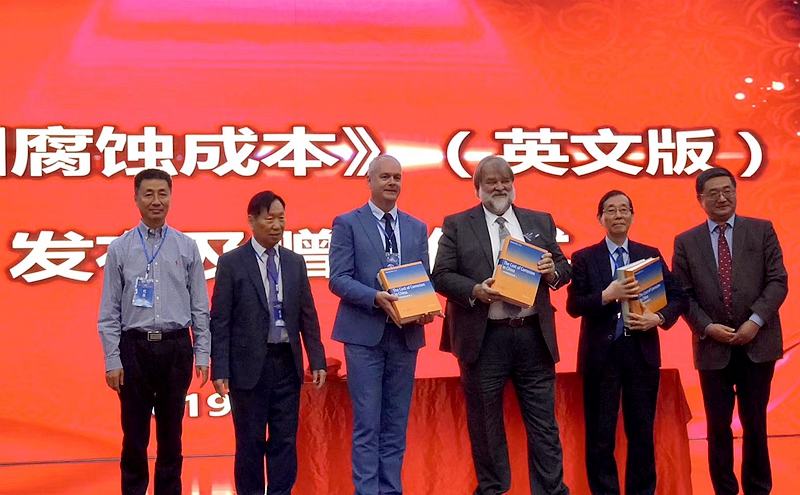 《中國腐蝕成本》英文版《The Cost of Corrosion in China》由國際出版巨頭Springer(斯普林格)出版集團與科學(xué)出版社共同出版,全球發(fā)行。本次腐蝕大會上,中國腐蝕與防護學(xué)會榮譽理事長侯保榮院士、理事長王福會教授、常務(wù)副理事長李曉剛教授和中國工程院環(huán)境與輕紡學(xué)部處長王小文女士共同為新書揭幕,并舉行了向NACE International主席Terry Greenfield、歐洲腐蝕聯(lián)盟主席Arjan Mol及日本腐蝕防護學(xué)會代表田邊弘往先生的贈書儀式,進一步加強了我國與全球腐蝕科技界的交流合作。
