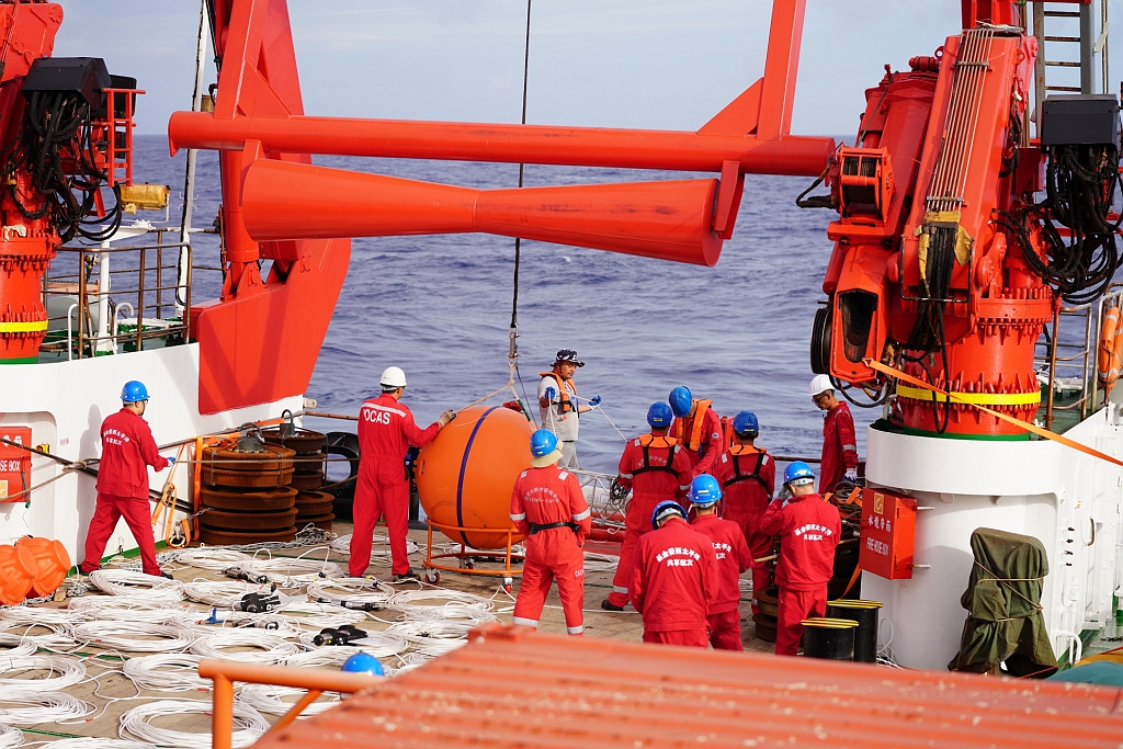 工作人員布放深海潛標(biāo)