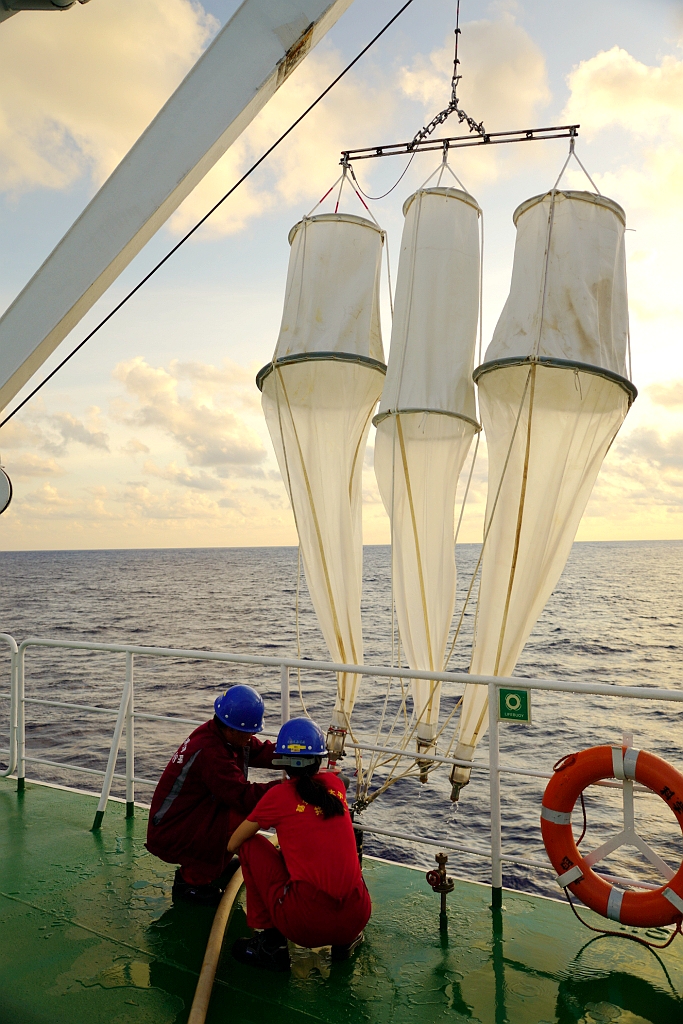 工作人員進(jìn)行生物垂直拖網(wǎng)
