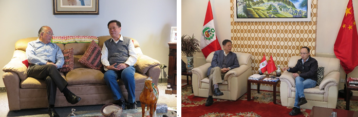 獲秘魯前衛(wèi)生部長Eduardo Yong接見(左),拜會(huì)中國駐秘魯使館(右)