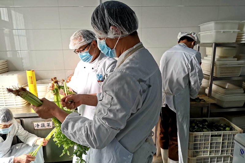 這是疫情防控期間食堂忙碌而普通的一天,也是戰(zhàn)斗在防疫一線的后勤工作人員辛勤工作的縮影。正是他們的平凡普通和愛(ài)崗敬業(yè),才讓每位職工吃上了安全營(yíng)養(yǎng)放心的午餐。