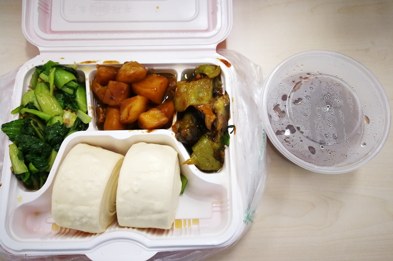 新冠肺炎疫情發(fā)生以來(lái),為減少人員聚集,食堂取消了堂食,以盒飯?zhí)撞托问焦┎?。每天早?/span>9點(diǎn),各部門訂餐聯(lián)絡(luò)人將本部門當(dāng)天所需午餐數(shù)量反饋給王保新,他會(huì)根據(jù)實(shí)際需求掌握備菜數(shù)量。為了確保營(yíng)養(yǎng)均衡并照顧大家的口味,每天的套餐分成了A、B兩種,配套一份湯,每種套餐的主食都可以自選米飯或者面食。另外,還有單獨(dú)的包子等進(jìn)行供應(yīng)。