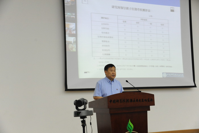 沈陽(yáng)生態(tài)所所長(zhǎng)朱教君代表所領(lǐng)導(dǎo)班子做了任期考核述職報(bào)告。在報(bào)告中,朱教君首先對(duì)本屆領(lǐng)導(dǎo)班子任期目標(biāo)完成情況和取得的成績(jī)進(jìn)行了全面匯報(bào)。五年來(lái),在習(xí)近平新時(shí)代中國(guó)特色社會(huì)主義思想指導(dǎo)下,在院黨組和沈陽(yáng)分院分黨組的正確領(lǐng)導(dǎo)下,所領(lǐng)導(dǎo)班子以推進(jìn)“生態(tài)文明特色研究所”建設(shè)為核心,緊緊圍繞院黨組提出的“率先行動(dòng)”目標(biāo)和“一三五”發(fā)展戰(zhàn)略,在戰(zhàn)略研討與重要改革、一三五規(guī)劃實(shí)施、特色所建設(shè)、學(xué)科布局、重大任務(wù)爭(zhēng)取、重大成果產(chǎn)出、重大平臺(tái)、人才隊(duì)伍、黨的建設(shè)與創(chuàng)新文化育成等方面取得顯著成效,圓滿完成了本屆班子任期目標(biāo)。5年來(lái),沈陽(yáng)生態(tài)所領(lǐng)導(dǎo)班子認(rèn)真貫徹落實(shí)黨中央、國(guó)務(wù)院、院黨組的重大決策部署,全面抓好巡視整改工作形成長(zhǎng)效機(jī)制;圓滿完成“三北防護(hù)林體系建設(shè)40周年綜合評(píng)價(jià)”等院黨組交辦的重要工作;發(fā)揮林業(yè)、農(nóng)業(yè)、環(huán)境等領(lǐng)域主學(xué)科優(yōu)勢(shì),科技支撐生態(tài)文明建設(shè)國(guó)家戰(zhàn)略;組織全方位戰(zhàn)略研討,實(shí)施研究所綜合改革,順利完成特色研究所建設(shè)并取得顯著成效,“一三五”規(guī)劃實(shí)施進(jìn)展取得重要成績(jī);科研經(jīng)費(fèi)大幅增長(zhǎng),主持國(guó)家研發(fā)計(jì)劃項(xiàng)目、重點(diǎn)基金,“優(yōu)青”項(xiàng)目不斷取得突破;重大科技成果顯著,榮獲國(guó)家二等獎(jiǎng)2項(xiàng)、省部級(jí)一等獎(jiǎng)7項(xiàng)、中科院科技促進(jìn)發(fā)展獎(jiǎng)和國(guó)際合作獎(jiǎng)各1項(xiàng);高水平論文比例持續(xù)攀升,4個(gè)學(xué)科進(jìn)入ESI全球前1%,生態(tài)學(xué)學(xué)科排名全院第一,全國(guó)前2%;獲批國(guó)家人才計(jì)劃1人、院創(chuàng)新團(tuán)隊(duì)3個(gè);成立國(guó)地聯(lián)合工程實(shí)驗(yàn)室 1 個(gè),院重點(diǎn)實(shí)驗(yàn)室 、工程實(shí)驗(yàn)室各1個(gè);舉辦“第十七屆世界肥料大會(huì)”并推動(dòng)國(guó)際肥料中心落戶我所;服務(wù)政府、行業(yè)部門能力顯著增強(qiáng);堅(jiān)持黨的政治引領(lǐng),樹立“貢獻(xiàn)為先”文化理念,打造風(fēng)清氣正的創(chuàng)新環(huán)境。