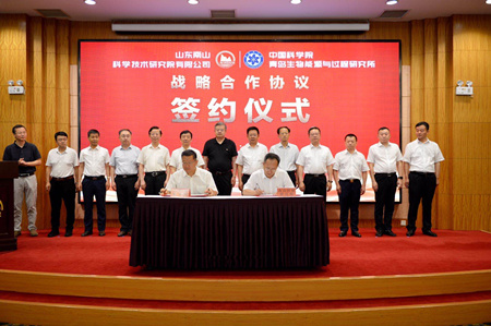 7月28日青島能源所(山東能源研究院)與山東南山科學(xué)技術(shù)研究院有限公司在煙臺簽署戰(zhàn)略合作協(xié)議,研究所黨委書記彭輝、黨委副書記許輝代表研究所參加簽約儀式,沈陽分院分黨組書記于海斌,院長韓恩厚,副院長馬越紅,分黨組副書記、紀(jì)檢組長郭秀銀,煙臺市副市長張代令,龍口市委書記韓世軍、市長呂波,南山控股董事長宋建波、總經(jīng)理宋日友以及來自分院系統(tǒng)研究所、轉(zhuǎn)制公司的所級領(lǐng)導(dǎo)干部出席簽約儀式。