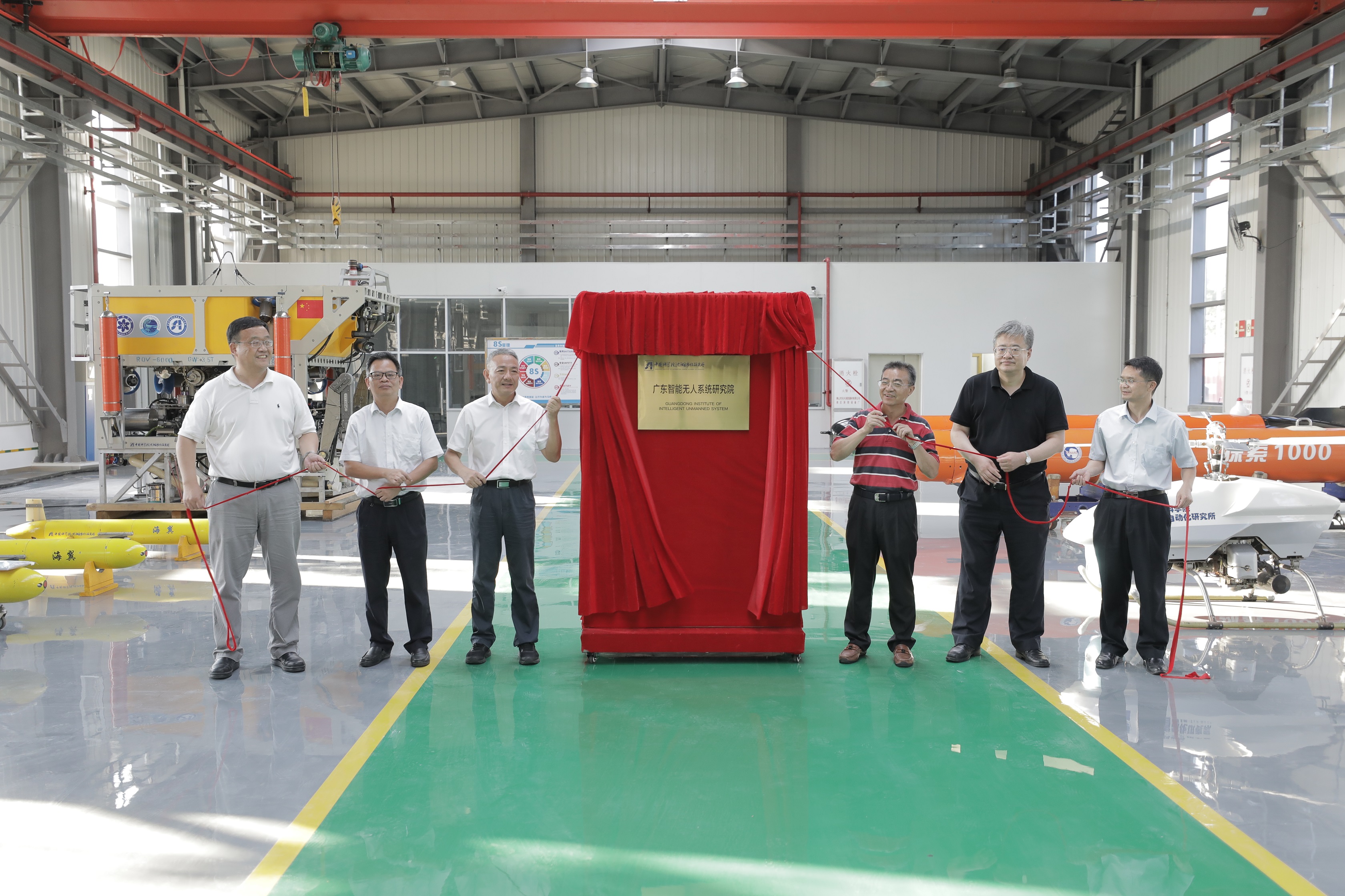 最后,與會領(lǐng)導和智能院理事參加了智能院揭牌活動,并現(xiàn)場參觀了系列水下機器人。