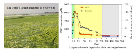 圖 滸苔綠潮場(chǎng)景及藻體長(zhǎng)期降解過(guò)程中溶解有機(jī)碳和細(xì)菌豐度的動(dòng)態(tài)變化