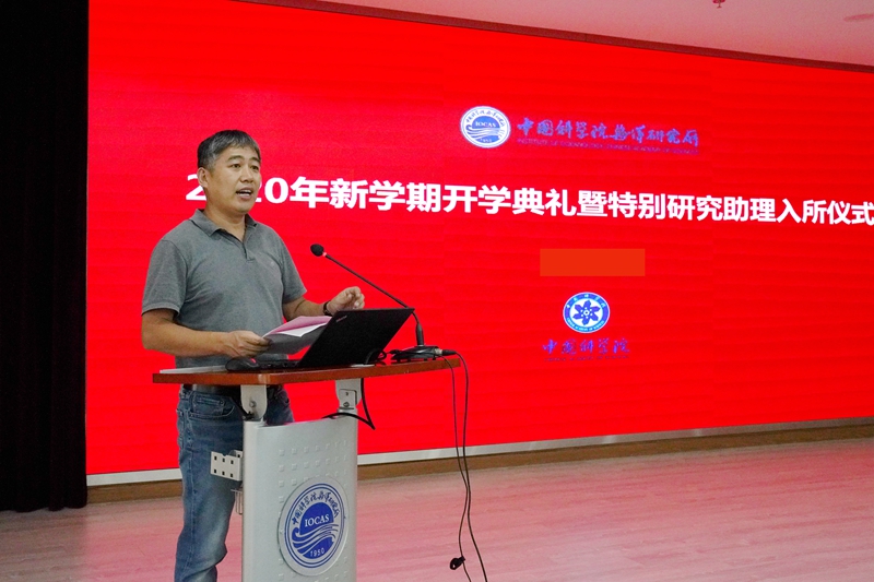 典禮在莊嚴的國歌聲中拉開帷幕。王凡所長首先致辭,代表研究所向新入所研究生和特別研究助理表示歡迎。王凡所長帶領(lǐng)大家回顧了研究所70年的發(fā)展歷程和突出貢獻,介紹了目前的學科布局和代表性成果,并介紹了海洋所科教融合、兩所融合、中科院海洋大科學研究中心規(guī)劃布局及建設(shè)進展等。希望新入所的研究生和特別研究助理盡快融入新的工作學習環(huán)境,堅定理想信念,勤奮學習、踏實工作,不怕困難、勇于探索,為我國海洋科技事業(yè)發(fā)展注入活力、貢獻力量。