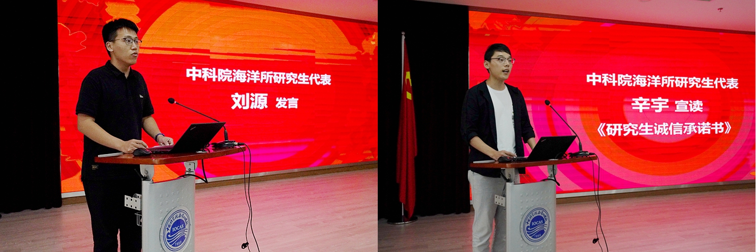 新生代表劉源在發(fā)言中表示,能夠進入海洋所這支海洋科技國家隊學習深造,內(nèi)心充滿自豪。在未來的學習中,會繼承和發(fā)揚老一輩科學家求真務實、勇攀高峰的科學精神,遵守科研道德規(guī)范,勤奮學習刻苦鉆研,修身立德志存高遠,以實際行動詮釋新時代年青一代的責任與擔當。