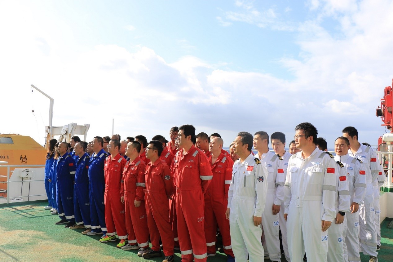 今年國慶和中秋雙節(jié)重合,懷著對祖國母親的真摯祝福和對家人的深切思念,“科學”號全體船隊員統(tǒng)一著裝(黨員佩戴黨徽),列隊整齊,向冉冉升起的五星紅旗行注目禮,齊唱國歌表達對祖國母親最崇高的敬意和最真摯的祝福。