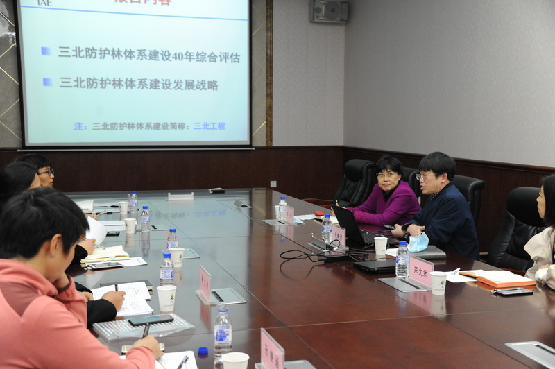 首先,郝欣代表沈陽(yáng)生態(tài)所歡迎九三學(xué)社遼寧省委課題組來所調(diào)研。米志芳介紹了課題組成員及本次調(diào)研的重點(diǎn)。朱教君研究員作為我國(guó)防護(hù)林領(lǐng)域?qū)<?,向調(diào)研組介紹了三北防護(hù)林體系建設(shè)40年綜合評(píng)估的情況,包括工程的成效、經(jīng)驗(yàn)、存在問題與對(duì)策建議,以及針對(duì)遼寧省域開展三北工程建設(shè)提出相關(guān)問題和建議。隨后,雙方就三北工程在遼寧省實(shí)踐中的具體問題進(jìn)行了熱烈交流和研討。