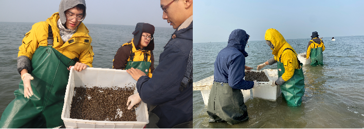 項目組前期通過多次實地考察,根據(jù)海草生長習(xí)性確立了適宜的海草修復(fù)區(qū)。10月中旬,項目組成員通過泥丸播種法和底播法播種鰻草種子100萬粒,后期將持續(xù)進行恢復(fù)效果追蹤。此外,項目組于2018-2019年運用直插法、根莖綁石法等方法在該海域開展了多次莖枝移植修復(fù)工作,修復(fù)效果顯著,海草成活率均達90%以上。