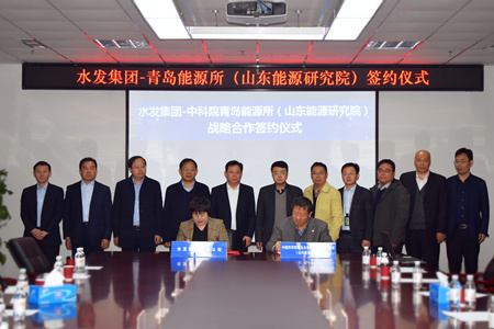12月4日,山東能源研究院與水發(fā)集團有限公司在青島能源所舉行合作簽約儀式,水發(fā)集團黨委書記、董事長王振欽,水發(fā)集團副總經理劉韶華,山東能源研究院副院長、青島能源所黨委書記彭輝,青島能源所黨委副書記許輝,省科技廳社發(fā)處處長徐峰出席簽約儀式。