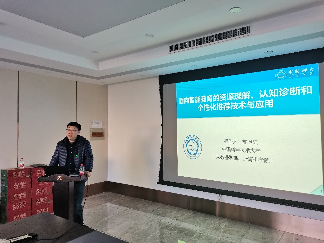 報(bào)告會(huì)上,陳恩紅以《面向個(gè)性化學(xué)習(xí)的認(rèn)知建模、教學(xué)資源分析及推薦》為題作報(bào)告。圍繞大數(shù)據(jù)分析及應(yīng)用實(shí)驗(yàn)室在在線教育系統(tǒng)方面的研究工作,首先介紹了研究背景與現(xiàn)狀,重點(diǎn)介紹了面向個(gè)性化學(xué)習(xí)的認(rèn)知建模、資源分析及推薦方法與應(yīng)用,著力解決學(xué)習(xí)資源表征困難、學(xué)習(xí)過程建模復(fù)雜以及學(xué)習(xí)策路難量化等問題,以從海量、稀疏、高噪聲的學(xué)習(xí)數(shù)據(jù)中準(zhǔn)確分析學(xué)生的學(xué)業(yè)水平特點(diǎn)。陳恩紅和參會(huì)人員進(jìn)行了深入的討論。報(bào)告會(huì)內(nèi)容豐富,思想深刻,與會(huì)師生表示受益匪淺。