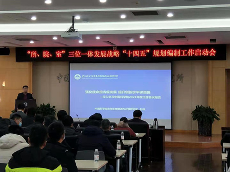 會上,研究所黨委書記彭輝以“強化使命擔當促發(fā)展提升創(chuàng)新水平謀自強—深入學習中國科學院2021年度工作會議報告”為題作了專題報告。彭輝指出,2020年以來,中國科學院在黨中央、國務院的堅強領導下,眾志成城、共抗疫情、勇攀高峰,取得了一批原創(chuàng)性的重大科技創(chuàng)新成果,系統(tǒng)總結了“率先行動”計劃第一階段取得的成效,進一步強化重大科技任務的組織領導和統(tǒng)籌協(xié)調,以全面深化改革為動力,為全國科技創(chuàng)新能力提升提供了強大動力和根本保證。2021年,面對新形勢,以習近平同志為核心的黨中央對中科院提出了新要求,要緊緊圍繞“四個率先”和“兩加快一努力”,堅持以創(chuàng)新為核心,將強化國家戰(zhàn)略科技力量為首要重點工作,牢記初心使命,聚焦主責主業(yè),著力為國家科技自立自強提供重要保障??茖W院深入貫徹落實黨中央、國務院重大決策部署,提出九項年度重點工作,確?!笆奈濉遍_好局、起好步。研究所要深入學習科學院2021年度工作會議精神,提高責任意識,強化使命擔當,加強統(tǒng)籌謀劃,全面深化改革,著力推進研究所創(chuàng)新發(fā)展,加快提升科技自立自強能力。